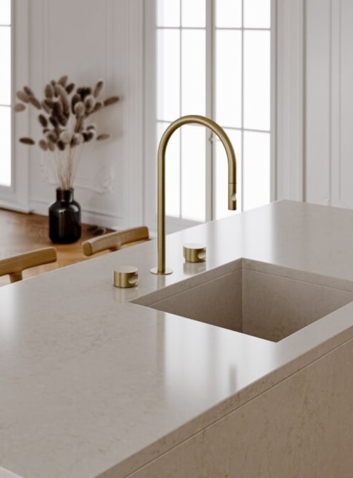 Efekt? Blat Taj Mahal Gold płynnie łączy nowoczesną prostotę z nutą luksusu – pasuje do kuchni skandynawskich, japandi, modern classic i loft.