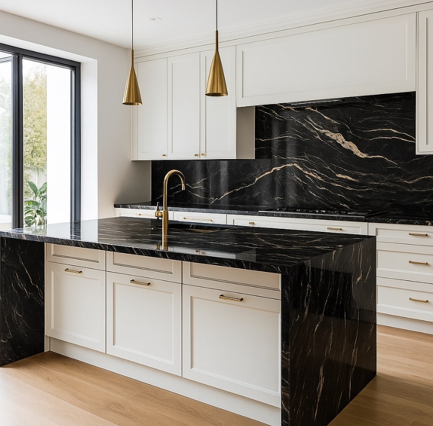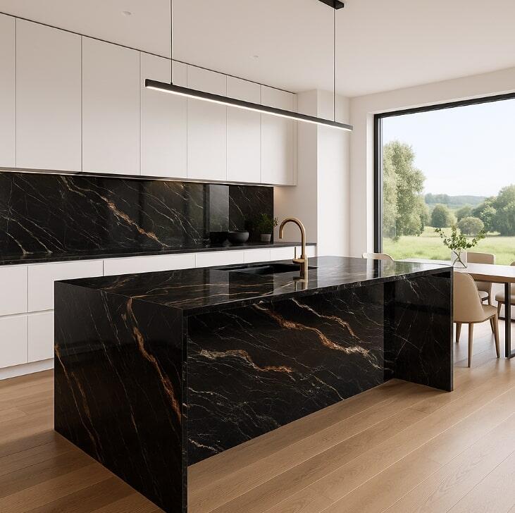 Blat kuchenny z granitu Belvedere to materiał niezwykle uniwersalny, który doskonale odnajduje się w różnych aranżacjach wnętrz. Jego głęboka czerń, dynamiczne białe i złote żyły oraz wyjątkowy rysunek sprawiają, że pasuje zarówno do wnętrz nowoczesnych, jak i klasycznych. Oto najważniejsze style, w których blat Belvedere prezentuje się szczególnie efektownie: