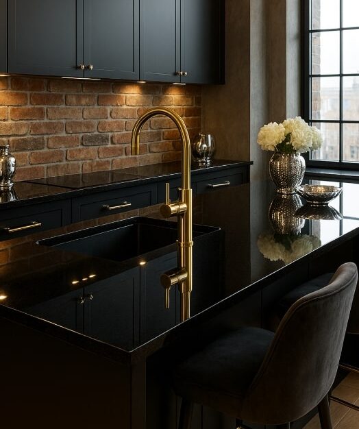 W aranżacjach, w których liczy się absolutna elegancja i niepodważalna trwałość, granit Nero Assoluto występuje w roli głównej. Ten kamień, pozyskiwany ze skał magmowych Zimbabwe, wprowadza do kuchni szlachetną prostotę i luksus dyskrecji. Monolityczna czerń o gęstej strukturze tworzy taflę przypominającą lustro – pochłania światło i podkreśla detale całego wnętrza. Jednocześnie wyróżnia się wysoką odpornością na zarysowania, temperaturę i intensywne użytkowanie, dzięki czemu idealnie łączy estetykę z praktycznością.