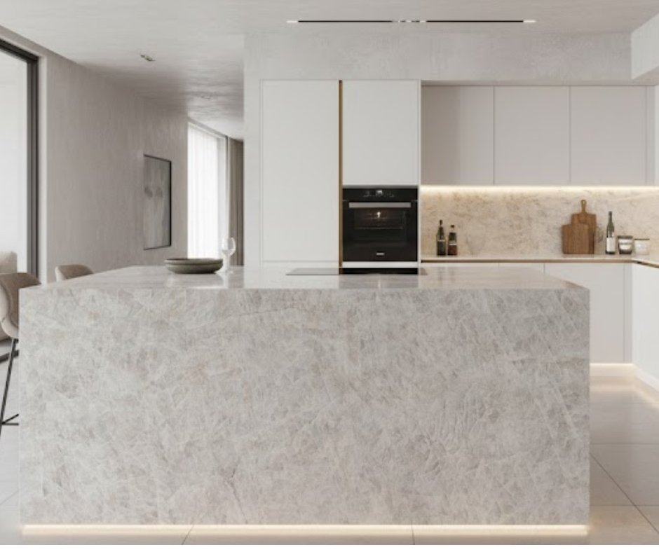Dlaczego Siquartz Cristallo jest najlepszym wyborem w segmencie lśniących, jasnych blatów? Kluczem jest unikalne, migoczące użylenie, które ma przewagę nad prostą bielą i skomplikowanymi wzorami marmuru.