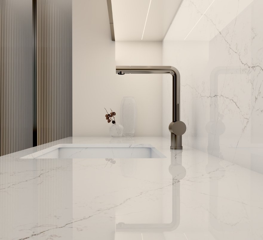 Wierzymy, że kuchnia to opowieść o stylu, emocjach i codziennym pięknie. A blat Siquartz Statuarietto Gold to jej najbardziej szlachetny rozdział – czysty, harmonijny i perfekcyjnie dopracowany.