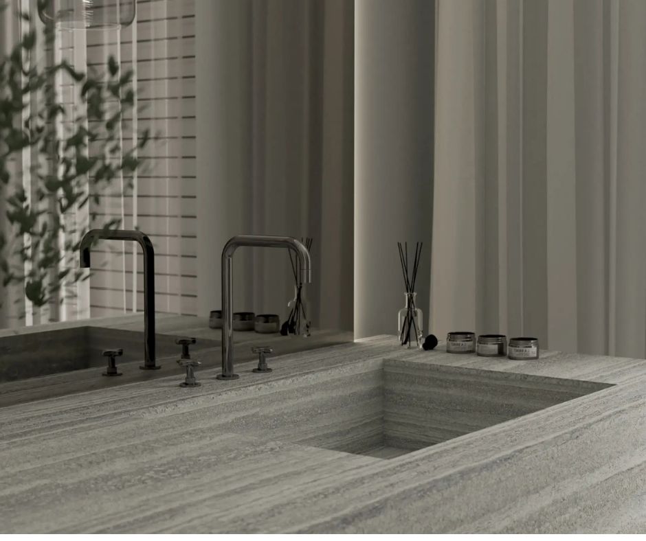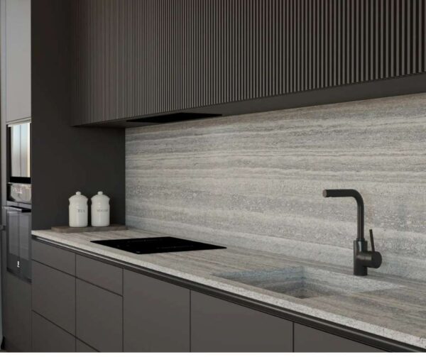 Travertino Grey to doskonały partner dla kontrastujących materiałów i kolorów, tworząc luksusowy minimalizm.