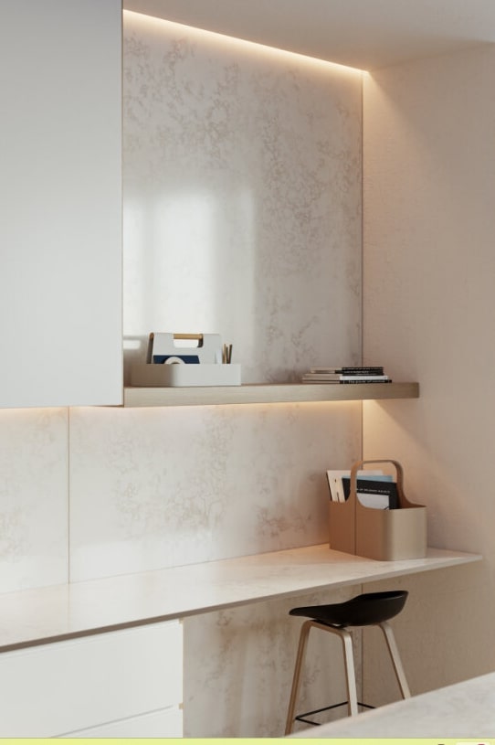 Dzięki swojej uniwersalnej, kremowo-złotej kolorystyce, blat ten idealnie wpisuje się w różnorodne style aranżacji wnętrz: