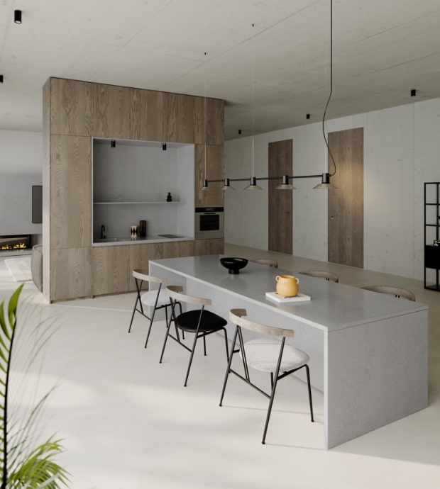 Perfekcyjna kuchnia to harmonia drobnych detali. Blat kuchenny z konglomeratu Technistone Badal Grey doskonale komponuje się z: