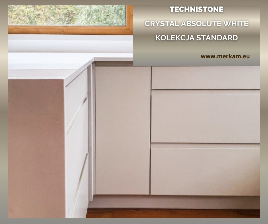 Blat kuchenny z konglomeratu Technistone Crystal Absolute White to jedna z najbardziej eleganckich i ponadczasowych powierzchni, jakie można zastosować w nowoczesnej kuchni. Ten wyjątkowy materiał zachwyca idealnie czystą bielą, która natychmiast rozjaśnia wnętrze i nadaje mu luksusowy charakter.