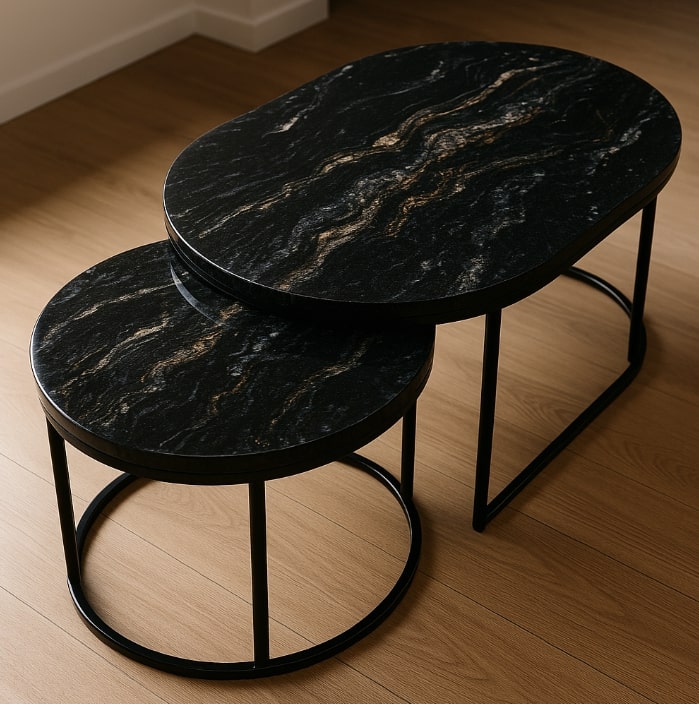 Kosmiczna głębia i niepowtarzalny wzór: Każda płyta Cosmic Black to dzieło natury – wirujące smugi i refleksy w czerni czynią go materiałem ekskluzywnym i przyciągającym uwagę.