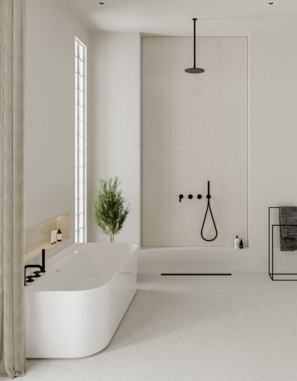 Neutralna paleta barw i delikatny wzór sprawiają, że Mistral White Technistone konglomerat jest materiałem uniwersalnym, który idealnie łączy się z różnorodnymi stylami wnętrzarskimi.